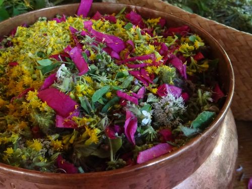 im Laufe des Jahres werden wir uns ein "aqua florida" herstellen, das uns auf unserem Lebensweg unterstützt - wir destillieren, hydrolieren, färben und rühren im Kessel der unendlichen Möglichkeiten ... im wahrsten Sinn des Wortes